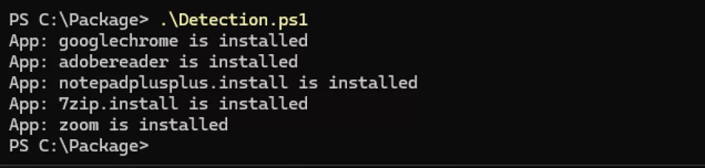 Write-Output "App: $App is installed"