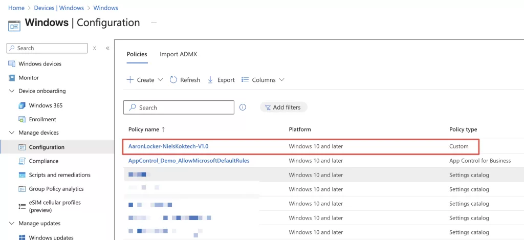 After, that I use the script from my previous post and create the Applocker Intune profile: