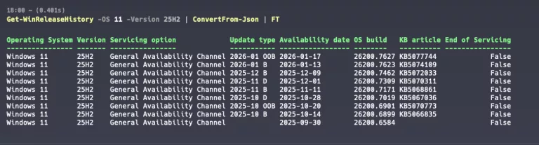 Maybe you heard of this already but I found this hidden gem (at least for me) where you can easily get the latest Windows release in PowerShell. The module is written by Jose Schenardie. You can find it here in the PowerShell gallery. So, what does it actually do? Well, let’s first install the module … Continue reading Get latest Windows release